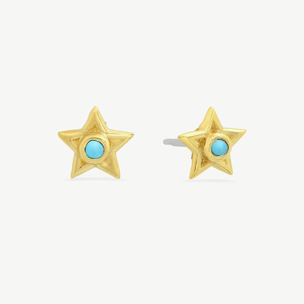 Tiny Star Stud Earrings with Turquoise