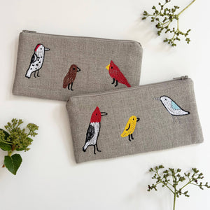 Bring a little nature into your everyday carry with this charming backyard birds pouch. Featuring natural flax linen adorned with vibrant multicolor stitching on both the front and back, it's a celebration of feathered friends in thread form. The quilted construction wraps soft cotton batting between sturdy layers, creating a pouch that's both durable and delightfully tactile. Peek inside and you'll discover a cheerful dotted fabric lining that makes organizing small treasures a joy. Measuring 7.25" by 4", it's perfectly sized for coins, keys, notions, or whatever little things need a cozy home. Whether you're a bird lover, a nature enthusiast, or simply someone who appreciates handcrafted details, this pouch brings personality and purpose to your pocket or bag.
