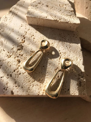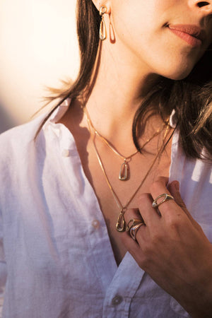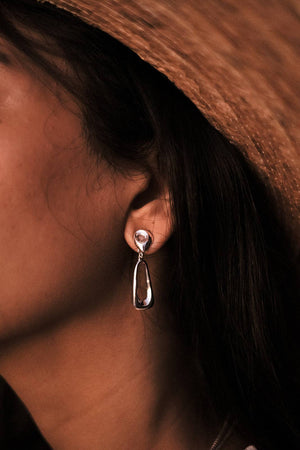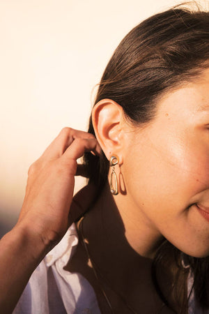 RILL - a shallow channel cut into soil by the erosive action of flowing water. Inspired by the way Mother Nature creates beautiful, evolving vessels in rocks & beach logs. By visualizing these natural vessels as metaphors for our own inner vessels this collection allows us to process and hold space for our experiences as they evolve within us over our lifetime - just as the earth is shaped and reshaped by the elements. I invite you to honor your own inner vessels with an object to serve as a token of it. Hand carved and lost wax cast in either brass or sterling silver. Soldered onto sterling silver posts. MEASURES: 1 3/8" x 1/2" ---- Descriptors: EARRINGS, dangly earrings, post earrings, statement earrings, everyday earrings, brass, sterling silver, everyday jewelry, illustrative jewelry, intentional jewelry, meaningful jewelry, narrative jewelry, Rebekah J. Designs, Rebekah J, Rebekah, jeweler, PNW, Pacific Northwest, Seattle, Seattle made, VESSEL Collection