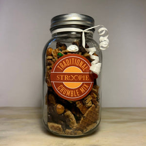 Enjoy 10oz of our Traditional Stroopie Crumble Mix, thoughtfully packed in a reusable jar to help reduce waste while keeping your snack fresh. Each bite is a tasty adventure as our signature Stroopie "crumbles" mingle with delightful surprises like rich chocolate, sweet candy pieces, crunchy pretzels, and occasional seasonal treats that keep things interesting. Perfect for sharing at gatherings or savoring solo, this playful mix brings a satisfying crunch and a burst of flavor to brighten any snack time. Dive in and enjoy a classic twist on a beloved treat!