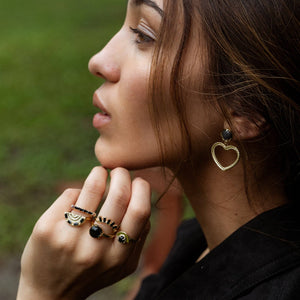 Add a touch of mystery to your look with the Under The Stars Ring featuring a stunning 9mm black onyx stone. Set in gold-plated bronze, this ring brings a bold yet elegant vibe to any outfit. Whether you're out exploring night skies or just want to sparkle in your everyday adventures, this ring is a charming way to carry a bit of celestial magic wherever you go.
