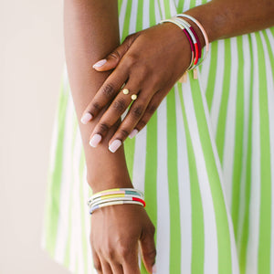 Our Wrapped Circle Bangles are the perfect way to add our signature Twenty Two West color blocking to any outfit. Mix and match multiple shades and metals for an artful look!