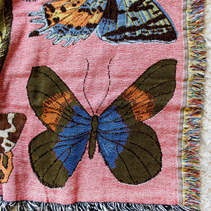 Moth Still Life Pink Tapestry Blanket