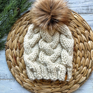 Product Features: Hand-knit with an 80% Acrylic / 20% Wool Blend Yarn Soft, warm, and sustainable Fits 21"-23" head