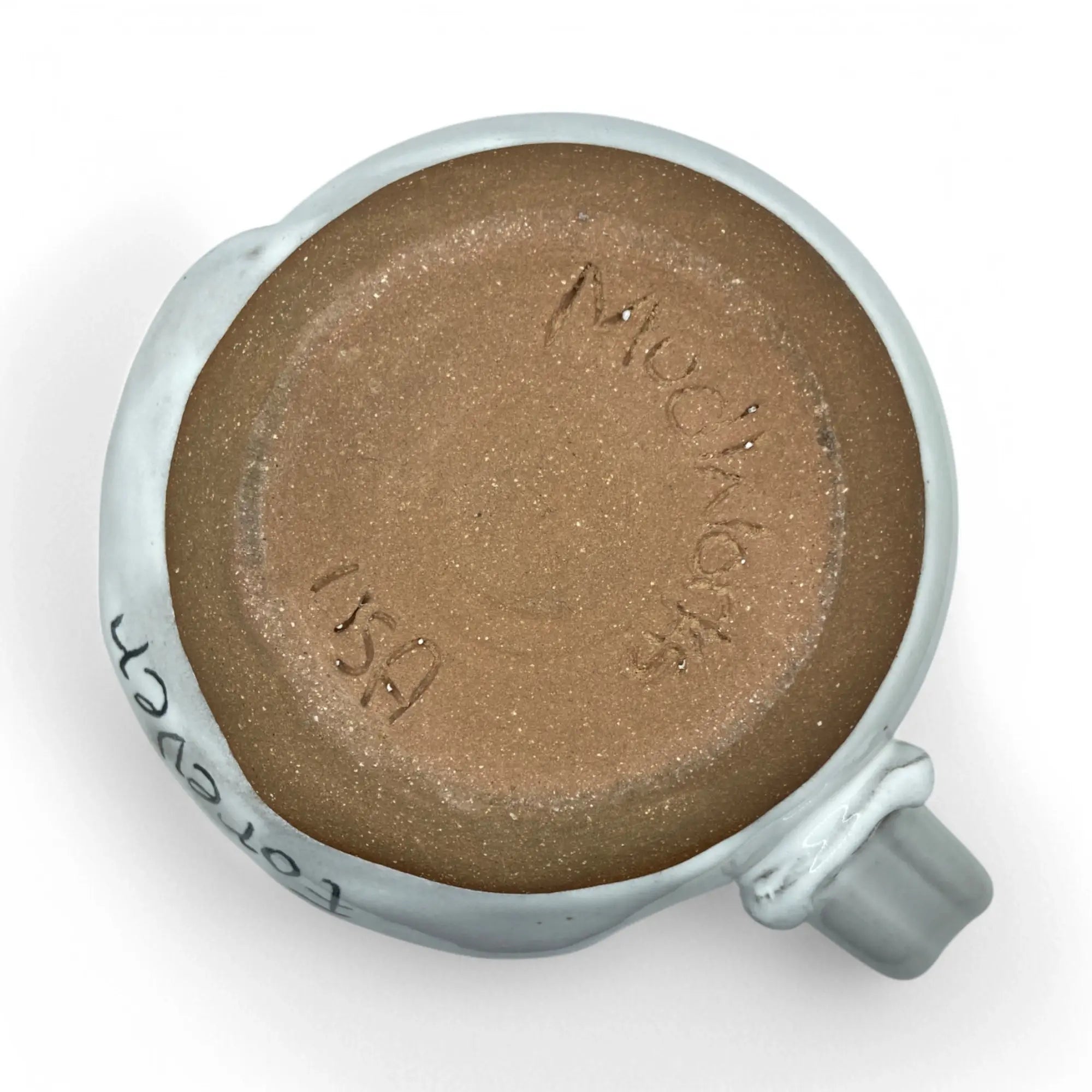 This mug is perfect for any penguin lovers. Or just anyone who's in love! This new penguin mug is dunked in our white glaze topped with our williamsburg blue. It holds about 14 ounces of liquid and measures to 4.5" by 5.5" with the handle. Everything is microwave, dishwasher, and food safe.