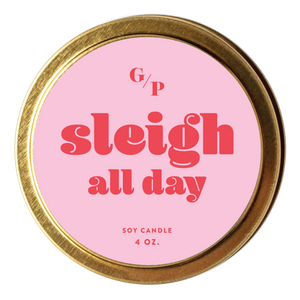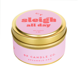 Light up the season with the Sleigh All Day Candle Tin, made for the go-getters who sparkle with confidence and bring holiday cheer wherever they roam. This 4 oz. soy candle bursts with festive notes of juicy blackcurrant, luscious sweet fig, fresh snowy balsam, and tangy nordic cloudberry—an irresistible blend that captures the magic and energy of the holidays. Encased in a shiny gold tin with a lid, it’s the perfect portable pick-me-up or gift for the main character in your life. Hand-poured in small batches with premium soy wax, rich fragrance oils, and cotton wicks, it offers 15–20 hours of clean, cozy burn. Proudly made in the USA, vegan, and free from phthalates, parabens, and cruelty, this candle invites you to sparkle bright and sleigh all day!