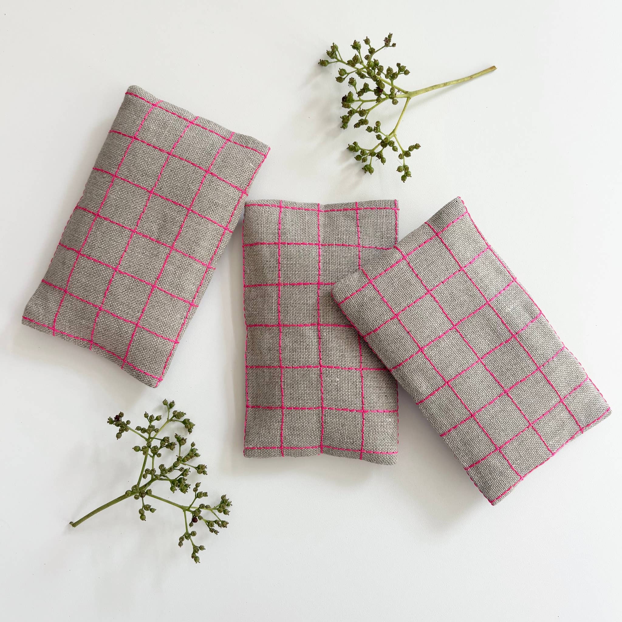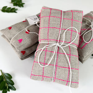 Meet your new favorite way to freshen up any space—the Windowpane Sachet Set! This dynamic duo features charming flax linen sachets accented with eye-catching neon pink stitching that adds a modern pop of personality. Bundled together with twine, these 3.5" x 5.5" sachets are filled with soothing lavender to keep your drawers, closets, and rooms smelling absolutely delightful. The windowpane design brings a touch of contemporary flair to traditional sachet style, making them as fun to look at as they are to use. Whether you're sprucing up your bedroom, gifting a friend, or adding a playful accent to your home décor, this set delivers both visual charm and aromatic bliss. It's the perfect blend of function and fashion!
