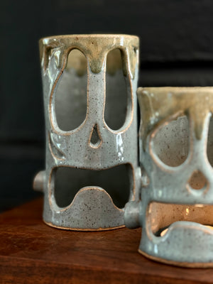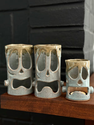 Size: Small ~3.75" tall x 2.25 2.5" Medium ~5.5" tall x 2.75 - 3" wide. *Please note, these Halloween candle holders are uniquely handmade one at a time (and we know that's what you love about them!) so please expect slight changes and variations in look and color from the images shown.