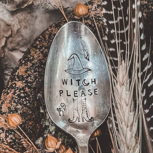 Add some cheeky charm to your holiday celebrations with the Witch Please Spoon! Part of the whimsical Holiday Spoons collection by sweet Thyme, this hand stamped vintage flatware piece is both food safe and designed for everyday use. Perfect for stirring your favorite festive drinks or serving up a little extra magic at the table, this spoon blends practical function with playful attitude. Whether you're mixing a potion or just spoiling yourself, the Witch Please Spoon is sure to cast a fun spell on your holiday gatherings.