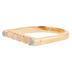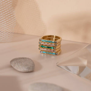 The Cha Cha Bar Ring delivers a bold yet elegant statement, ideal for adding a pop of color and charm to any outfit. Whether dressed up or casual, its unique mix of pink opal baguettes and vibrant 2mm opal cabochons brings a fun, spirited vibe to your jewelry collection. Its high-polish finish gleams with every movement, creating a lively sparkle that draws the eye, so wear it with confidence and a touch of flair.
