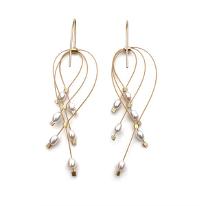 Grey Pearl Lattice Hook Earring with Gold Cable