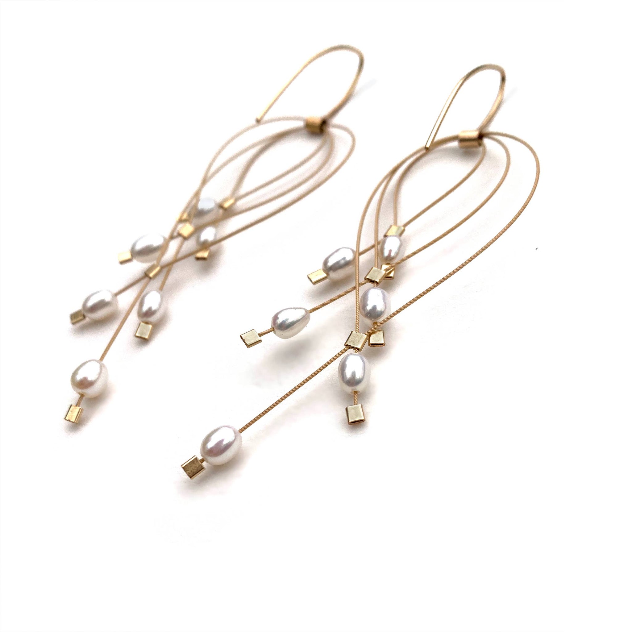 Craving a little extra length? These elongated beauties are the stretched-out sibling of our beloved Vertigo Earrings. Crafted from flexible, lightweight woven stainless steel mini cable with a silky nylon finish, they're as comfortable as they are chic. Hand-finished with delicate 14k gold-fill accents and matching gold-fill hooks, these 3.25" stunners are hypoallergenic and surprisingly travel-savvy—they collapse without complaint and bounce back to shape. Perfect for those who like their hoops with a little more drama.