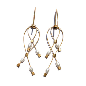 Pearl Lattice Hook Earrings with Gold Cable