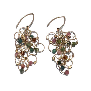 Each piece is further adorned with small square connectors and findings made from 14k gold fill and sterling silver, accented with touches of semi-precious stones. This combination makes the jewelry both hypoallergenic and luxurious. Though the collections have an ultra-dainty, extremely lightweight appearance—especially ideal for earrings—they are also highly resilient, capable of being crushed and bouncing back into shape thanks to the cable’s unique properties.