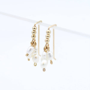 These are the perfect everyday earring—the kind you'll reach for on Monday mornings and forget you're even wearing by Tuesday. Tiny 14k gold filled beads cradle delicate free floating freshwater pearls that catch the light just right, creating a subtle shimmer that feels both effortless and intentional. At just .75" drop length, they're dainty enough to layer with other pieces or let shine solo. Crafted with 14k gold filled wire and beads paired with genuine freshwater pearls, these little beauties are built to become your go-to accessory for literally everything.