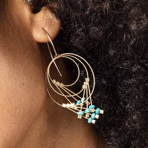 Turquoise Vertigo Hook Earrings with Gold Cable