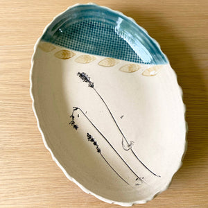 Oval Ceramic Serving Platter w/ Lavender & Leaf Pattern
