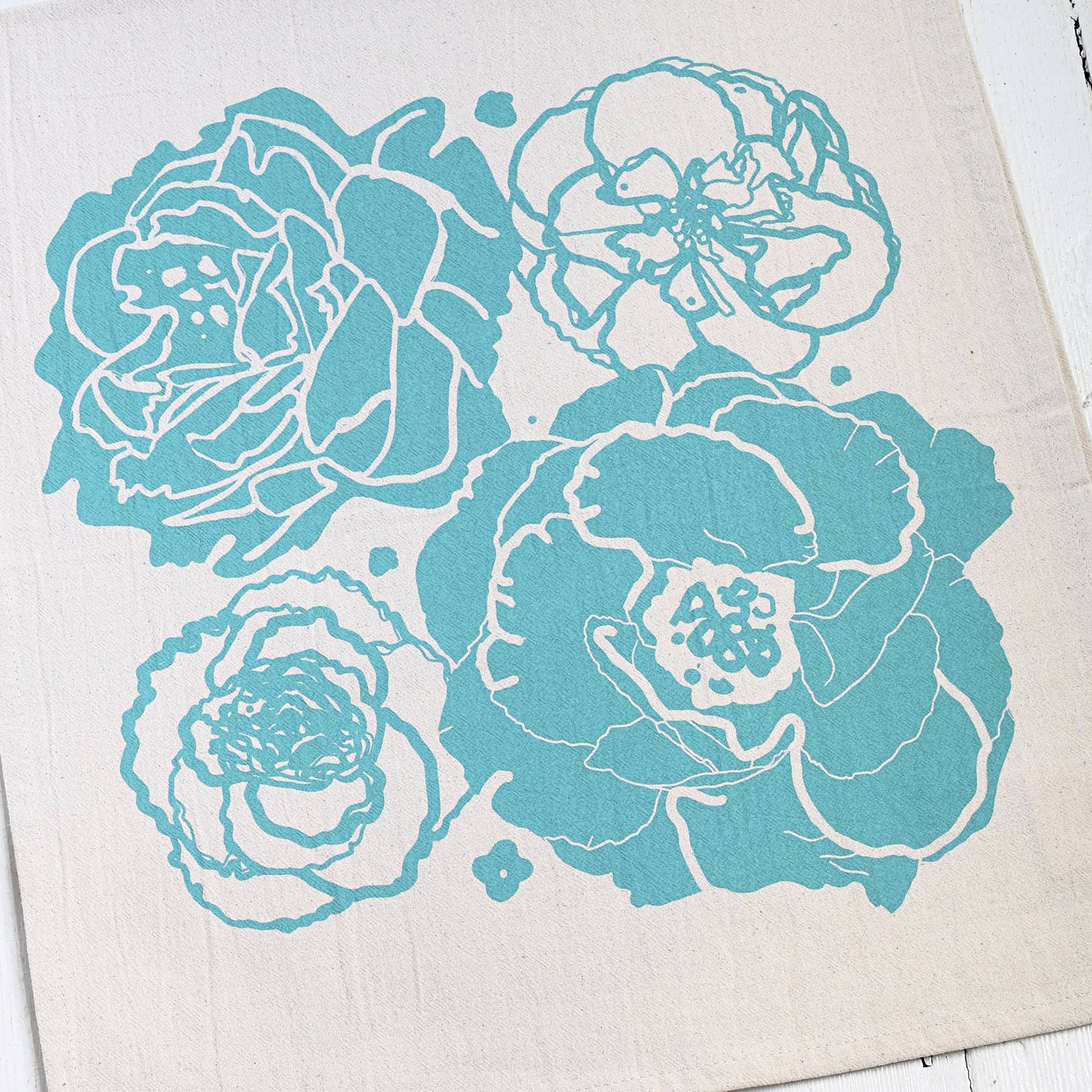 Peony Blossom Tea Towel - Teal