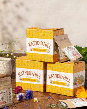 This herbal tea flight is a fun way to try 8 different herbal teas; a perfect gift for tea lovers who enjoy exploring new flavors! Contains eight bestselling organic, loose leaf herbal tea: blends for reclaiming rest, joy, and connection. All these hand blended teas are 100% grown, harvested, dried and blended on a family owned and operated organic farm in Pennsylvania. Each box contains eight sample packs of tea in compostable pouches. Each pack will make 2-3 cups of tea, about ~20 cups total per box!