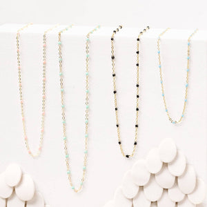 Add a petite pop of color to your necklace stack with the dainty Dot Necklace Chain! An instant favorite, this chain is perfect for everyday and can be worn at 16" or 18" in length. Whether you're decorating it with a pendant, an initial charm, wearing it alone or layering up, this piece adds playful energy and a lighthearted dose of character. Style tip: This chain looks adorable with our Initial Charms!