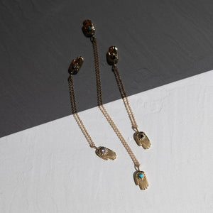 Bring a spark of charm to your style with this fun Hamsa Necklace, showcasing a dainty 2mm turquoise gem. The Hamsa symbol is known for bringing protection and positive vibes, while the vibrant turquoise adds a pop of color that brightens any outfit. Perfect for layering or wearing solo, this necklace is a fun and meaningful accessory to keep good energy close wherever you go.