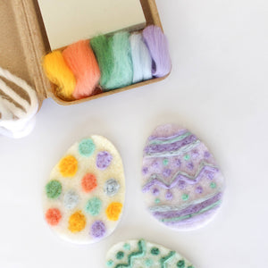 This mini kit is perfect size for Easter baskets, vacation crafting, or a fun after school Spring themed craft with kids. A wonderful project for eye-hand coordination and inspiring creativity! A high quality, approachable, Needle Felting Craft Kit that invites beginners & beyond to experience the joy of felting wool. Following simple instructions, crafters decorate Easter eggs. They will find enjoyment beyond honing the craft itself, as they can string the decorated Eggs together to make a cute wall hanging or use as individual ornaments for Spring decorating, table place settings, a new take on an Easter egg hunt, and more.
