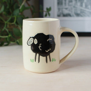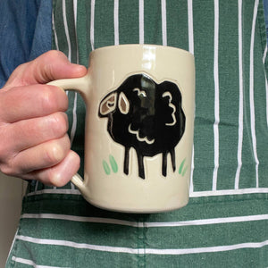 Offer your customers a playful nod to individuality with this hand-thrown white stoneware mug, featuring a hand-painted and carved black sheep design. Perfect for coffee, tea, or hot cocoa lovers who enjoy standing out from the flock, this mug combines artistry and whimsy to make every sip a statement.