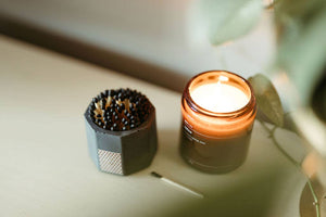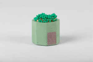 Meet the Original Candle Match Holder with Rainbow Matches! Each match stick holder is hand-poured concrete with a cork bottom to protect your surfaces. Each set comes matches included. There is also a striker pad attached to the side of your holder for easy lighting.