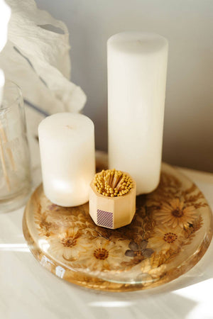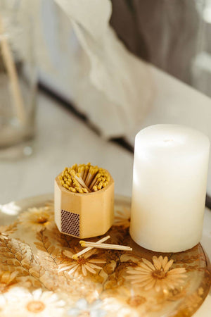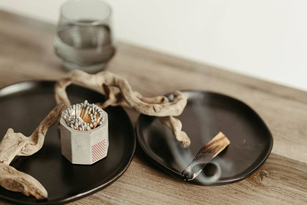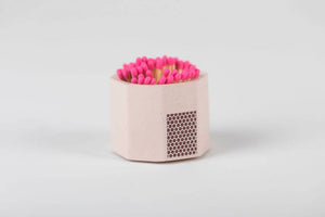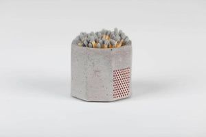 Meet the Original Candle Match Holder with Rainbow Matches! Each match stick holder is hand-poured concrete with a cork bottom to protect your surfaces. Each set comes matches included. There is also a striker pad attached to the side of your holder for easy lighting.