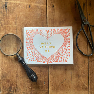 Express your affection with timeless elegance using our Valentine Heart Frame Card—a beautifully understated way to share love. This A2-sized letterpress card features a charming heart design framed with delicate detail, inviting you to fill the blank interior with your own heartfelt words. Each card is individually handprinted using authentic letterpress techniques, where every color is applied one layer at a time by hand. The result is a tactile, dimensional card with genuine character that mass-produced alternatives simply can't match. You'll notice the subtle variations and rich impressions that make letterpress so special. Crafted in our tiny 2-person studio nestled outside Asheville, North Carolina, this card embodies slow, intentional production. We print on premium American-made eco-friendly paper using vintage letterpress equipment and sustainable practices throughout our process. Your card arrives beautifully presented with a coordinating kraft envelope and compostable plastic sleeve. Perfect for anniversaries, engagements, or any occasion calling for heartfelt sentiment, this card delivers genuine warmth and artisanal quality. When you choose handmade, you're supporting real artists who pour care into every order—and we truly appreciate yours.